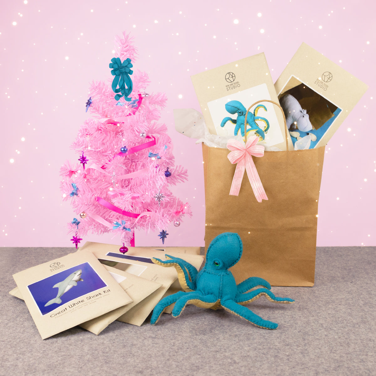 Everything is more fun under the sea! This cute cephalopod includes posable limbs that allow it to wrap around and even hold onto objects, really bringing this felt ocean dweller to life! This is NOT a difficult project, there’s just a lot of arms to stitch around!